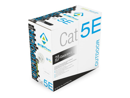 Przewód U/UTP kat. 5e Alantec KIU5OUTS305 PE zewnętrzny suchy, Fca 4x2x24 AWG, 1Gb/s, czarny, 305m